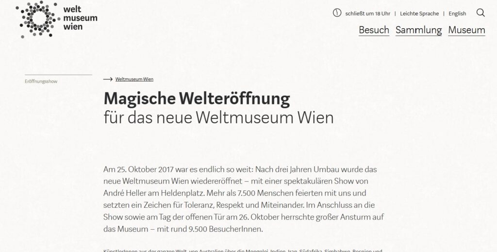 Das Wien Museum hat heute nach langer Renovierung seine Türen wieder für die Öffentlichkeit geöffnet. Gemeinsam mit meinem Team produziere ich seit Jahren Kurzdokumentationen und Informationsfilme für das Wien Museum und darf das auch weiterhin tun. Ab dem 6. Dezember werden zwei der von uns produzierten Kurzdokumentationen in den Dauerausstellungen des Museums gezeigt. Ich wollte das mit Dir teilen. Besuche unbedingt das renovierte Wiener Museum. Übrigens im Obergeschoss gibt es ein wunderbares Café mit Terrasse und Blick auf die Karlskirche.
